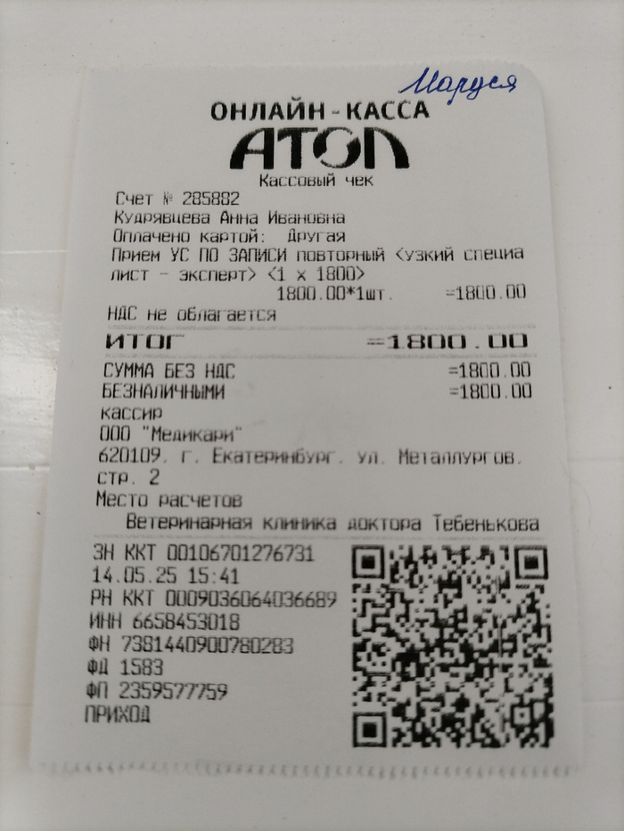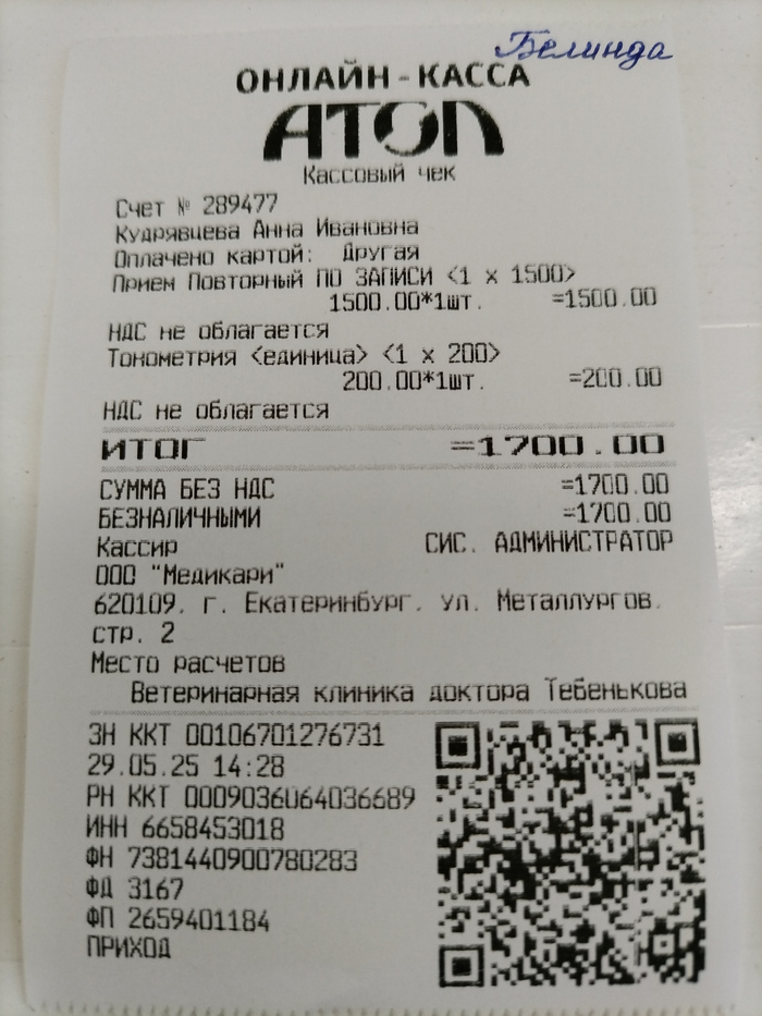 Чек за 29.05 (повторный прием вирусолога, тонометрия)