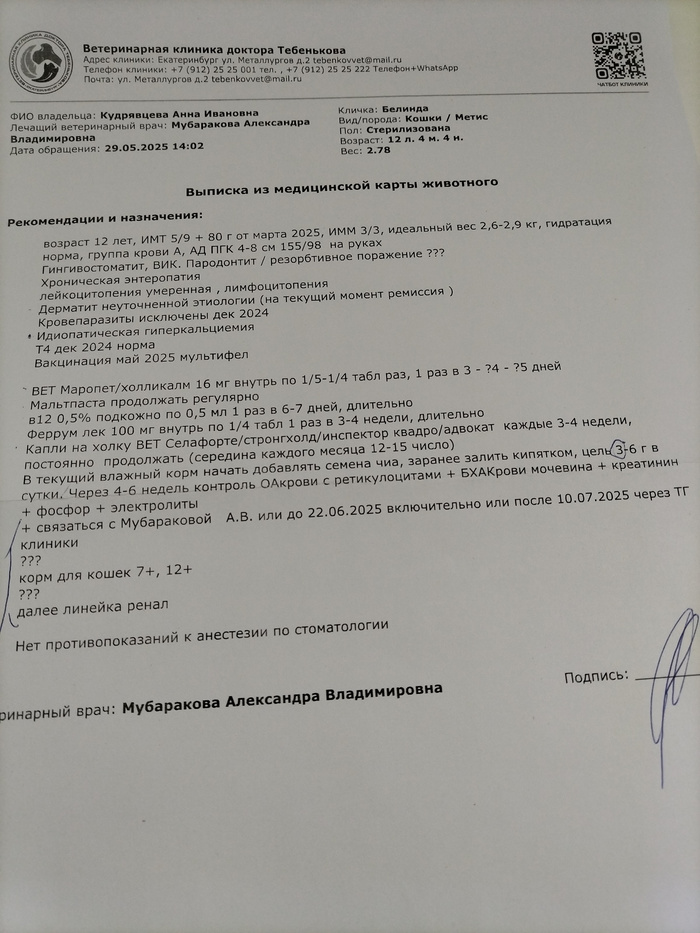 Белонька готовится ко 2-му этапу операции, 27 мая сдали необходимые анализы.