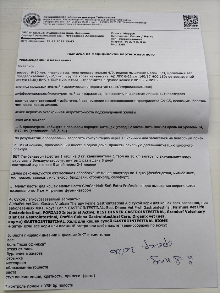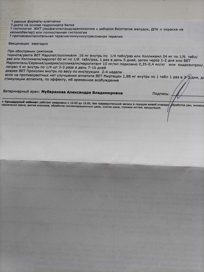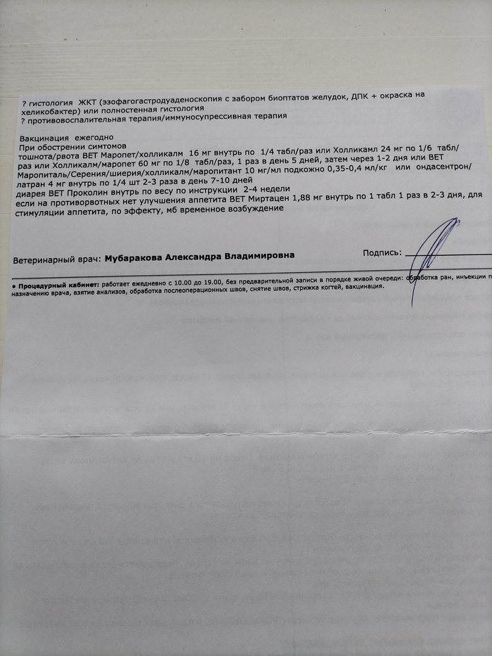 Маняше в связи с проблемами ЖКТ (отказ от еды, жидкий стул, рвота) было настоятельно рекомендовано проконсультироваться у гастроэнтеролога.
