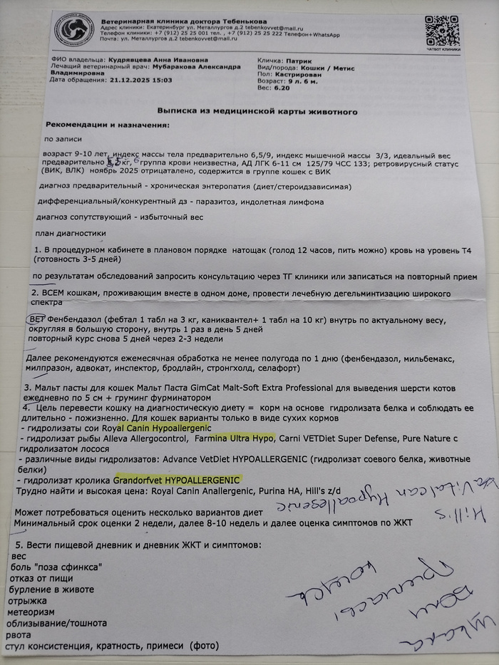 Патрику в связи с проблемами ЖКТ после операции (отказ от еды, вялость, рвота в течение нескольких дней) был настоятельно рекомендован прием гастроэнтеролога.