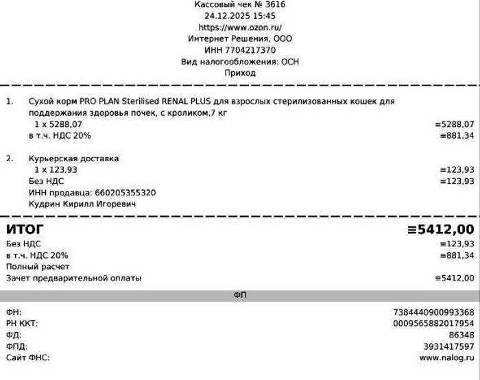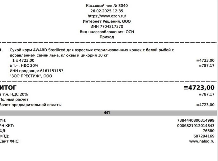Снова расходы, корм выкупила по акции на Озон, хватит на 2 месяца.