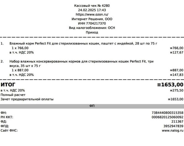 Влажный корм с запасом на 1 месяц сегодня вечером выкуплю, предоставлю чек.
