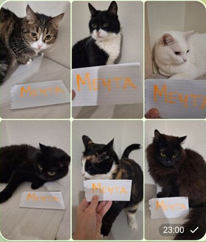 6 кошек, которые были подобраны умирающими на улице. Эпилепсик Черныш ест только влажный корм.Остальные на корме сухом .