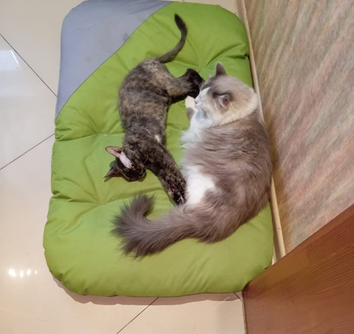 3. И следующее чудо - уехала на испыталку трехлапка Триша. В новом доме она быстренько подружилась со старшим котиком. Очень надеюсь, что всё у них сложится наилучшим образом.