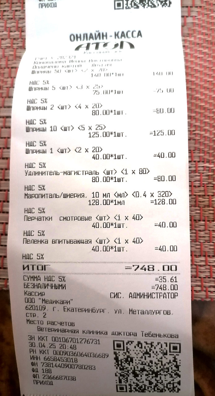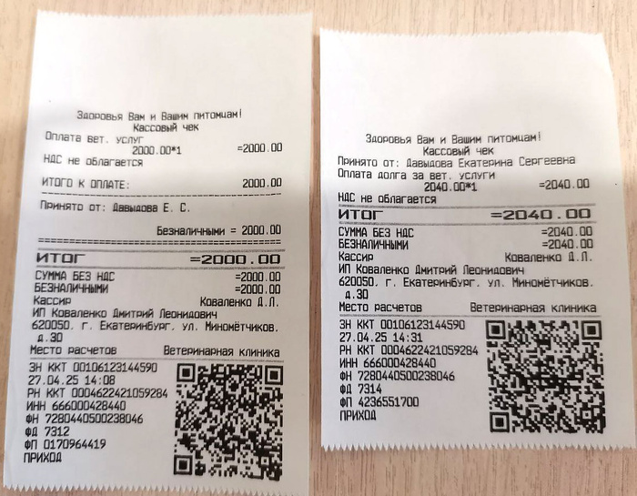 - 12113р. (30.04.2025) - прием, УЗИ, анализы, дневной стационар для кошки Ваты; плюс поездки на такси в клинику и из клиники (на общественном транспорте больное животное везти - это все же слишком). Оплачено из "на кого нужнее":