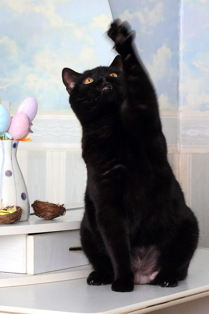 Беда в том, что девушка, у которой он сейчас живет – очень много работает. Ее по 12-13 часов нет дома. Кот молодой, игривый, ему нужно нагружать мозги и мышцы – «выбегивать», как маленького щенка… Девушке физически не до того. Она так больше не может. Ну мы тоже не звери какие… понимаем, каково это – не иметь возможности выспаться.
