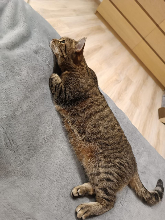 Огромное спасибо всем благотворителям! 🙏 А Барсик побежал претворять свои наказы в жизнь. Он йогой занялся, кажется - иначе как объяснить эту позу со второй фоточки? Барсик говорит, эта поза называется "кот в мешке" 😂
