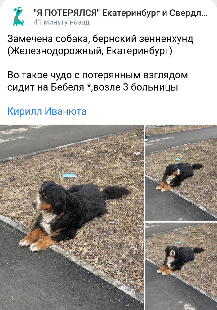 Я один раз находила такого Берна, хозяева откликнулись не сразу, бегали искали самостоятельно, увидели объявление мое в Потеряшках случайно, связались и собаку забрали домой, слез от счастья было много у хозяйки.
