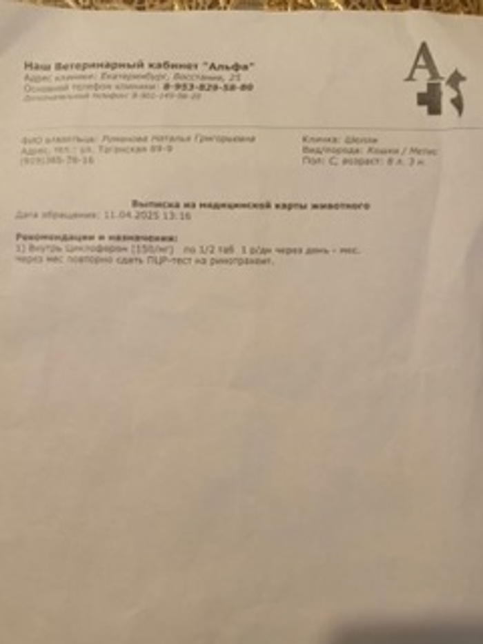Если не везет, так почему-то стабильно. Снова болеем, да еще и вирус....До этого случая были два раза в клинике. И вот снова.....Прошу помощи на лечение кошечки 4000 рублей. Все документы и фото выкладываю.