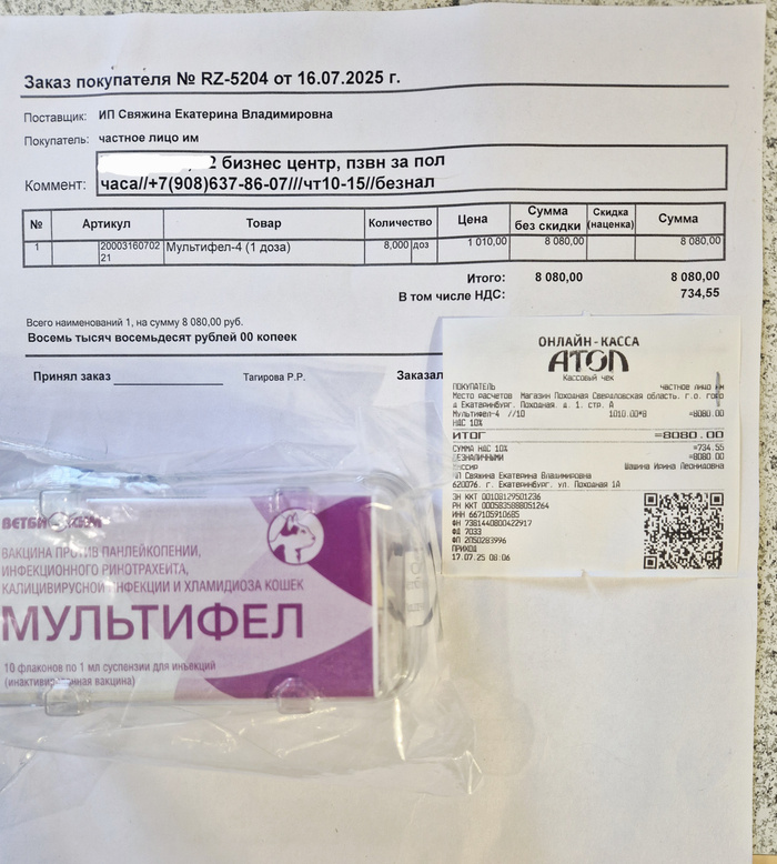 Купила опять в св-маркете вакцины. Т.к у нас два новых котёнка (4 шт.) + подошла ревакцинация Бонзая и подходит у Шурика. Ещё 2 будут в запасе, иногда хочется, чтобы были срочно, тем более в эпоху дефицитов. Котят уже первично вакцинировали.