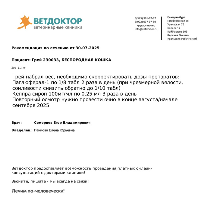 Полторы недели назад у нас подошёл срок для консультации по нашему котёночку с атаксией и эпилепсией. Но я этот срок пропустила из экономии. В эти выходные (прошло уже 3 недели) у малыша случился новый приступ, даже на фоне постоянного приема лекарств. Понятно, что откладывать стало невозможно, записалась на онлайн-консультацию, оплатила. Сегодня утром поговорили с врачом, он увеличил дозировку препаратов в соответствии с увеличением веса. Нам велено появиться на очный прием в конце августа - начале сентября. Будет решаться вопрос, что делать дольше. Честно говоря, я немножко в панике по поводу этого котёнка: что будет дальше? Что с ним делать? Где брать денег?