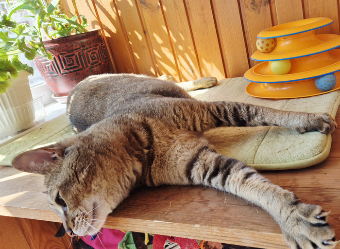 А пока солнечный привет от нашего котика-забияки. Эх, от солнышка остались только воспоминания и фото