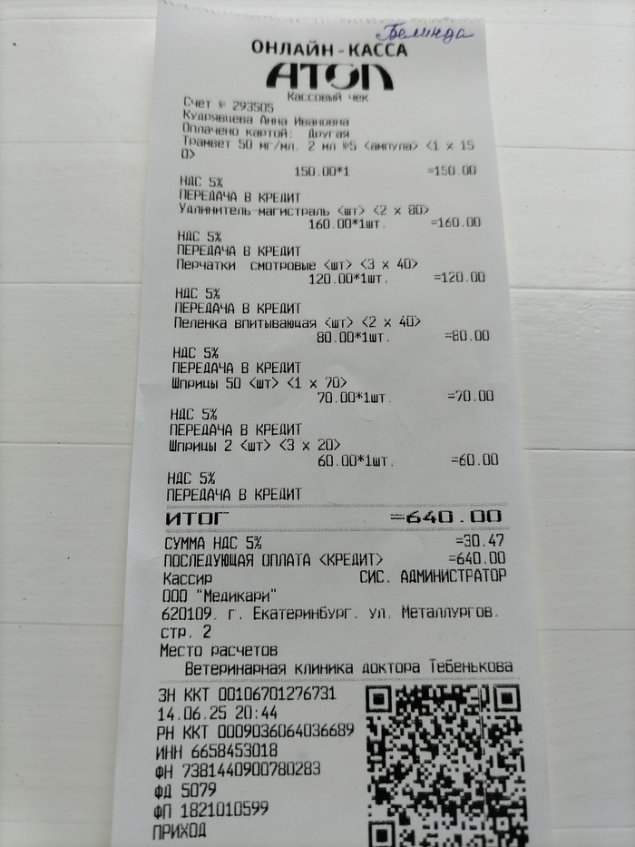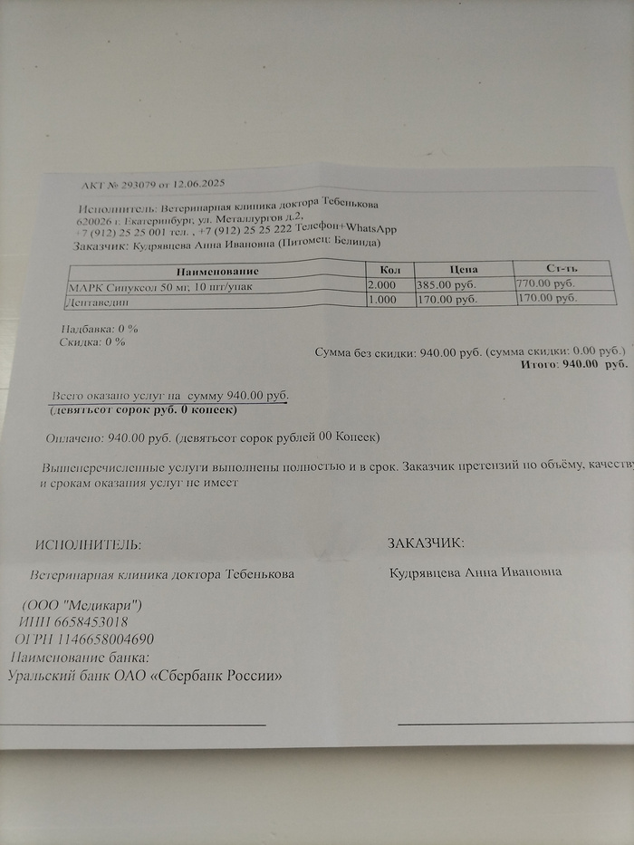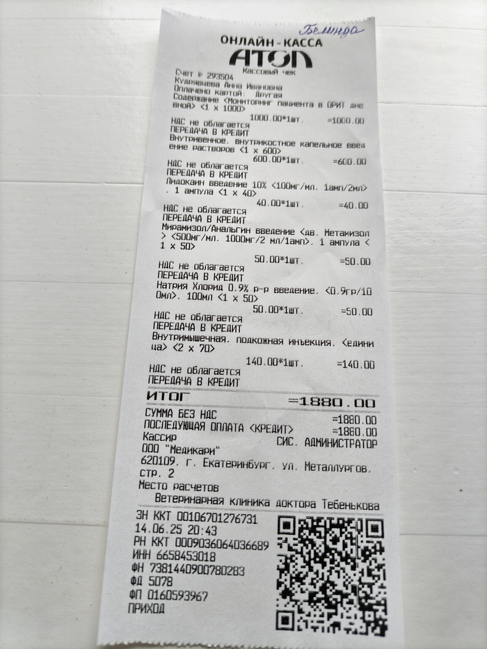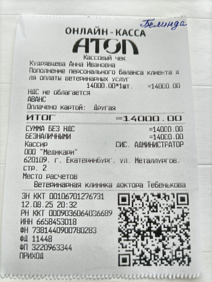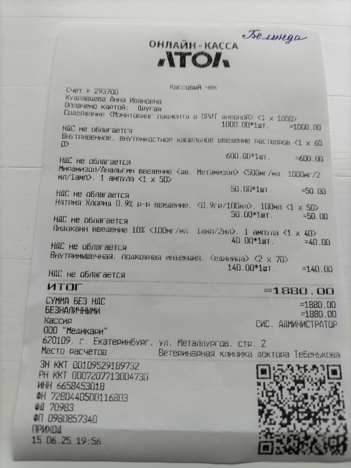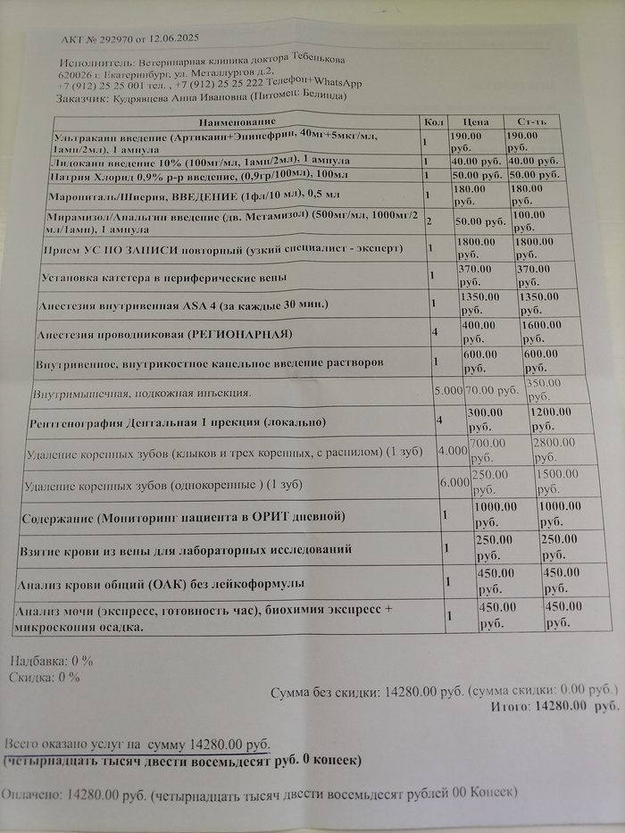 Это был долг, остававшийся в клинике за 2-ю операцию Белочки (Белинды), которая прошла ещё 12 июня.