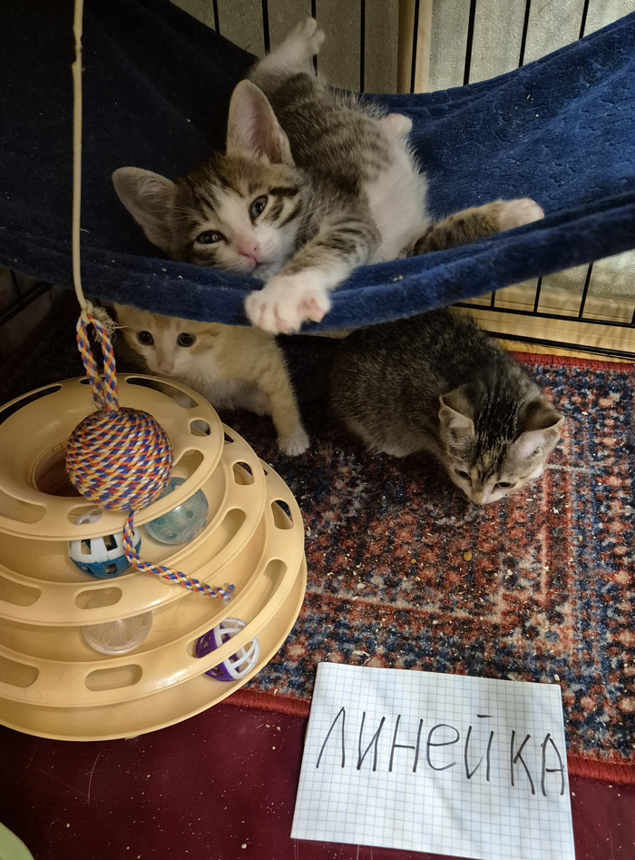 Был ещё рыжий котёнок, но его забрали поиграться для проживавшей там таджикской девочки.