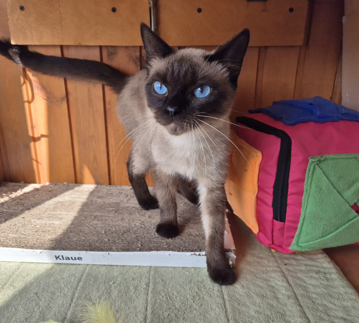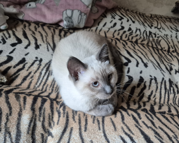На передержке с 6 мая 2023. Был совсем тощенький, блохастый, сильно испуганный, сильно облезлый, больной. Было подозрение на лишай, но оказалось блошиным дерматитом. Были серьезные проблемы с пищеварением, через несколько месяцев ушли в ремиссию, но бывают рецидивы. Пролечили зубки, но так и не попали на прием по результатам, нужен постоянный уход, т.к гингивит и высокая вероятность развития "одонтокластического резорбтивного поражения зубов". Пробовали отправить в пиар с честным обозначением букета проблем - тишина. Продолжаем пробовать.