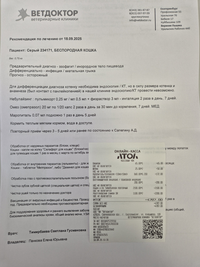 А вчера стало явно похуже. Дышать стало труднее, перестал есть и пить. Периодически кричит. Пошла сегодня в порядке очереди в больницу. Сделали рентген.устно сказали, что что-то есть в носоглотке, и в месте, где пищевод переходит в желудок.