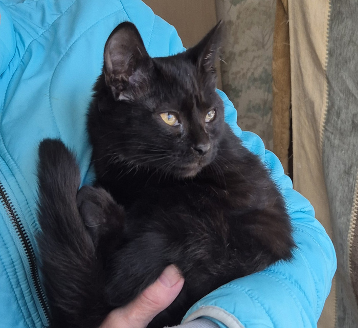Пару недель назад появилась в подвале на ул.Пионеров. Котёнок, месяца 3. Очень боялась, из подвала не высовывалась. Но исправно приходила к подвальному окну на кормёжку. Хоть она была очень пугливая, но было понятно, что кошечка была домашней. У нас с Натальей пепенаселение и инфекция, взять её проблематично. Стали уговаривать на передержку жильцов, кормилиц... Одна женщина дала согласие, мы котёночка поймали, а она отказалась. Экстренно заселили мелкую к женщине-кормилице, но через день она сообщила что не справится, нужно котёнка срочно забрать.