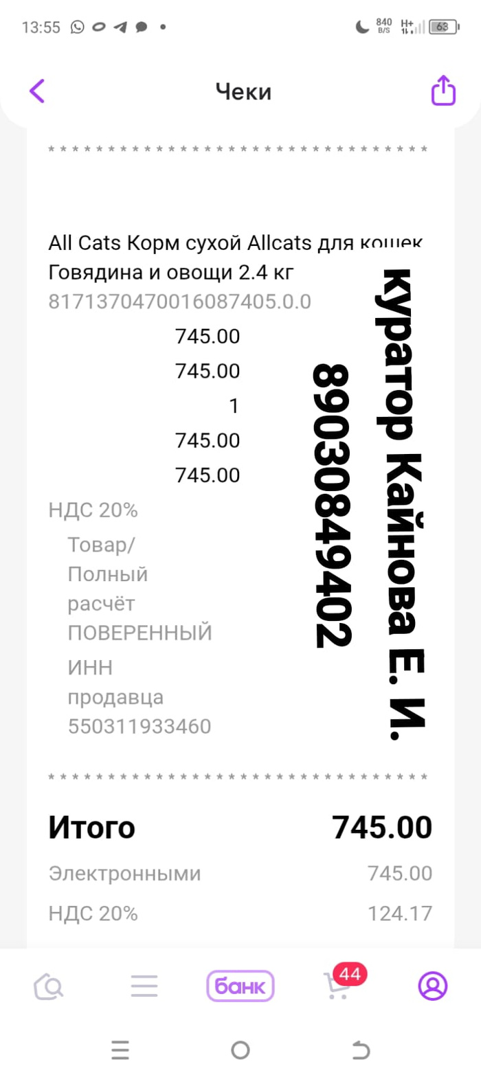Помощь в покупке сухого и жидкого корма передержке .