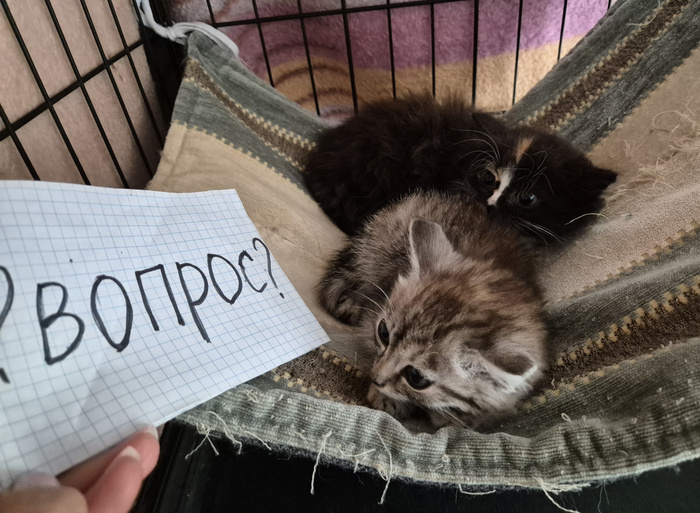 Мы не специально. Этих котят взяла женщина, которая не должна была их брать. Котята-садоводы (чему я совсем не удивляюсь). Дички. Скорее всего месяца полтора. А когда одна из котят почти сразу бросила есть, выдала рвоту, то в разговоре честно рассказала мне, что ей не до лечения, помрут, так помрут... Забрали. Жалко мне всех. Кроме себя, видимо.