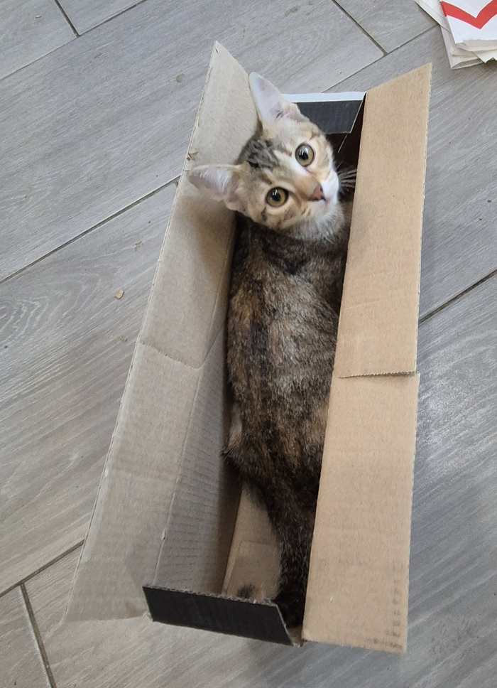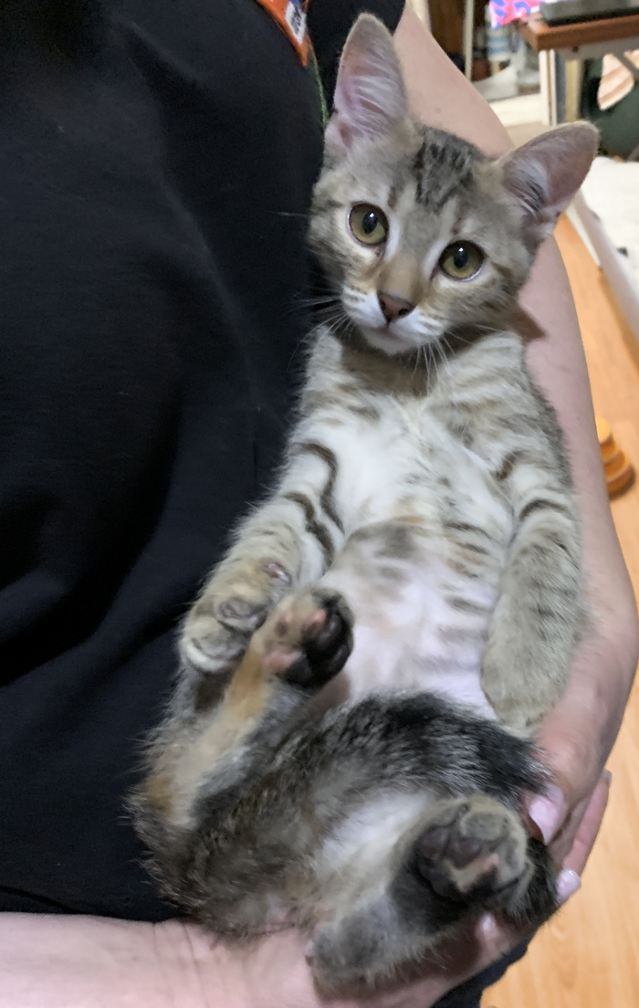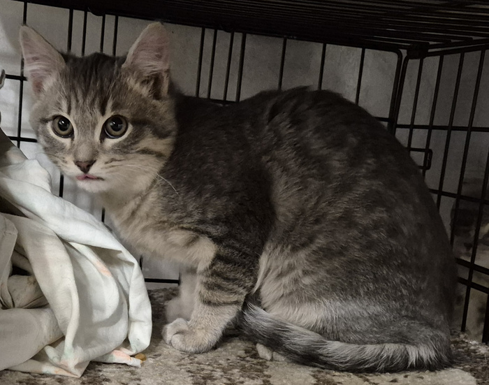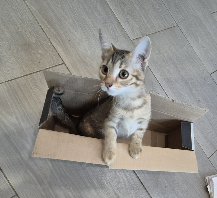 В выходные отложили последнего пятого котёнка из Серёжиного помета. Пока он в стрессе, почти не ест. Пописать сходил только сегодня (с утра воскресенья). Большой уже. Но постараемся адаптировать.
