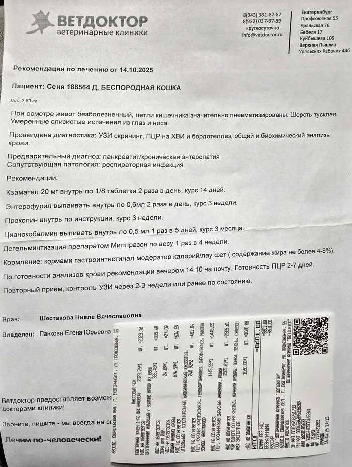 Сразу отчитаюсь по лечебным расходам: купила рэд пойнтику лечебный корм и пробиотик. Другие лекарства в отчёт не включаю. Пока не приобрела только фавирокс Серёже и милпразон рэдпойнтику