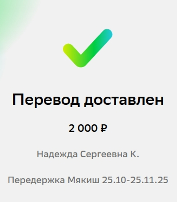 - 2000р. (25.10.2025) - оплата передержки кота Мякиша с 25.10.2025 по 25.11.2025