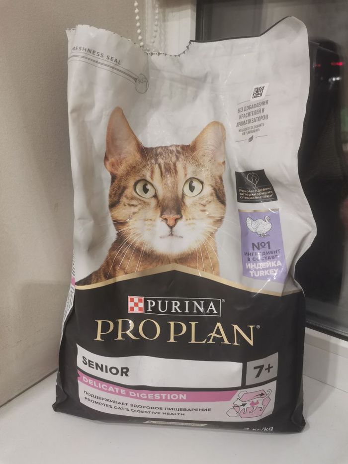 - Сухой корм ProPlan Senior 7+, остаток ~4 кг. Это для Шанталика. И 2 пакета сухого корма ProPlan Adult 1+.