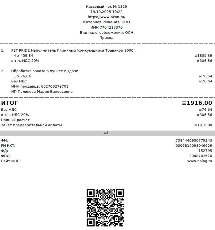 - 1916р. (19.10.2025) - комкующийся наполнитель, 4 пакета по 9 кг - для Энигмы и Бабса