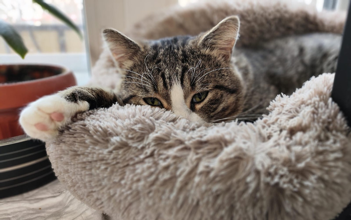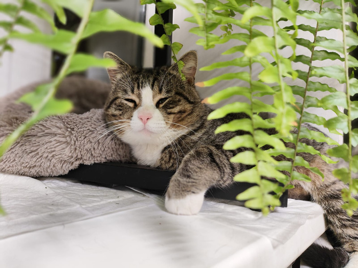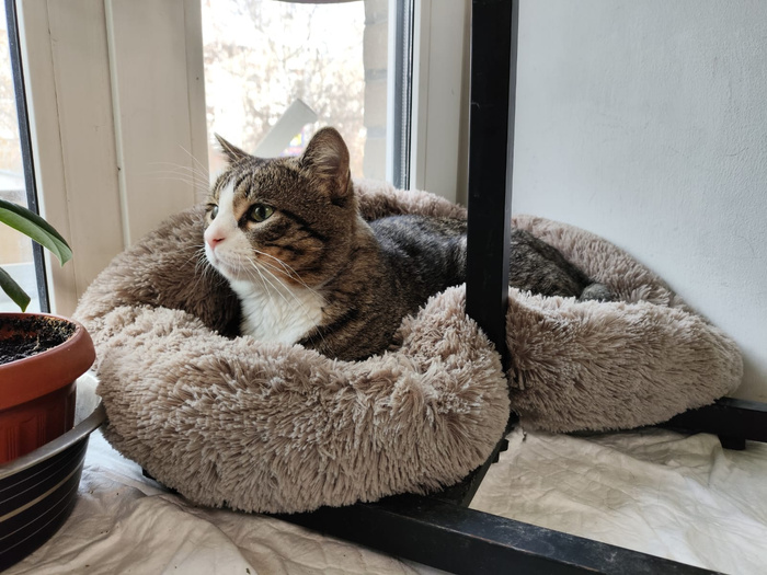 Эля предлагала забрать котика обратно в приют. Но в Первоуральске всегда хватает животных, т.ч. мы пристроим мальчика своими силами. Он очень классный, совершенно домашний, ласковый, умный. Играет вовсю. Спит у меня на голове, лижет лицо и руки, мурчит непрестанно. Абсолютно дружелюбен ко всем, кого видит. Как можно было бросить такого классного парня… не представляю