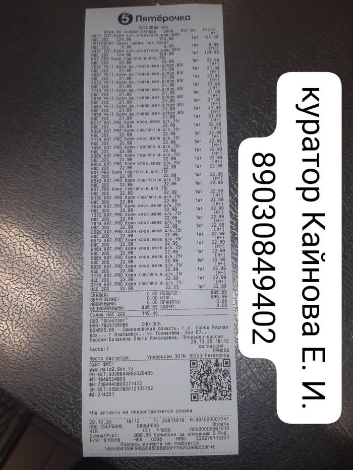 Расход: 896 руб - Корм для котенка и Мурзяши