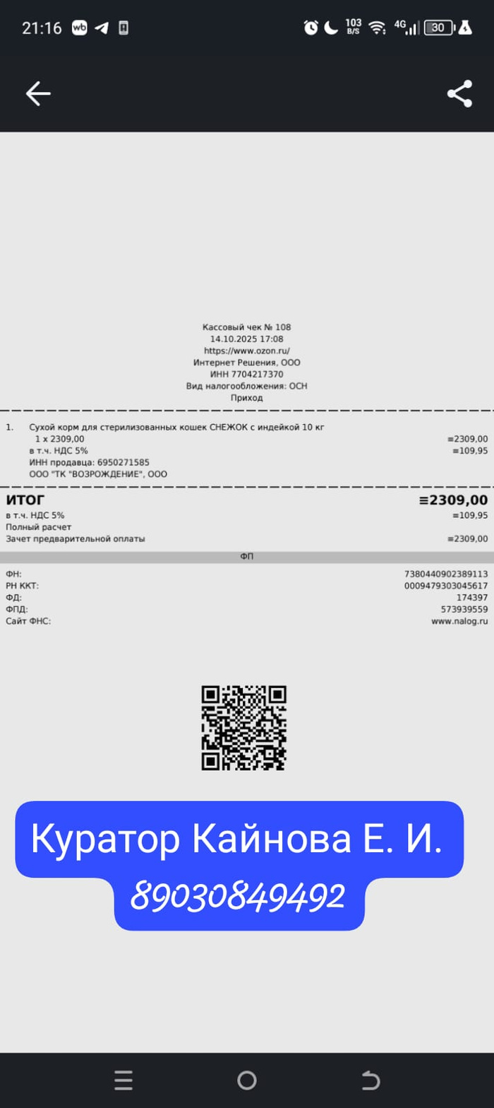 Помощь в покупке сухого и жидкого корма передержке Октябрь.