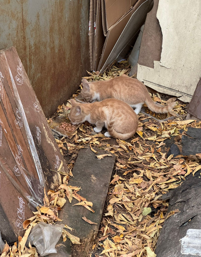 На днях поймали кошку на стерилизацию. У неё оказалось как минимум четверо котят. Двое рыжих, двое серых с белыми грудками и лапками. Фото удалось сделать только рыжиков. Котята пугливые, не подходят. Возраст, скорее всего, до 3 месяцев. Показалось, что среди рыжиков 1 мальчик и 1 девочка