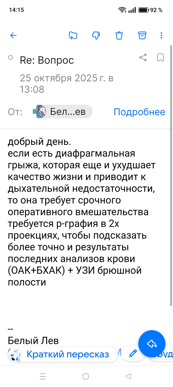 Узнала в Белом Льве нет ИВЛ, при этом писали, что готовы оперировать, странно, такую операцию делают с ИВЛ.