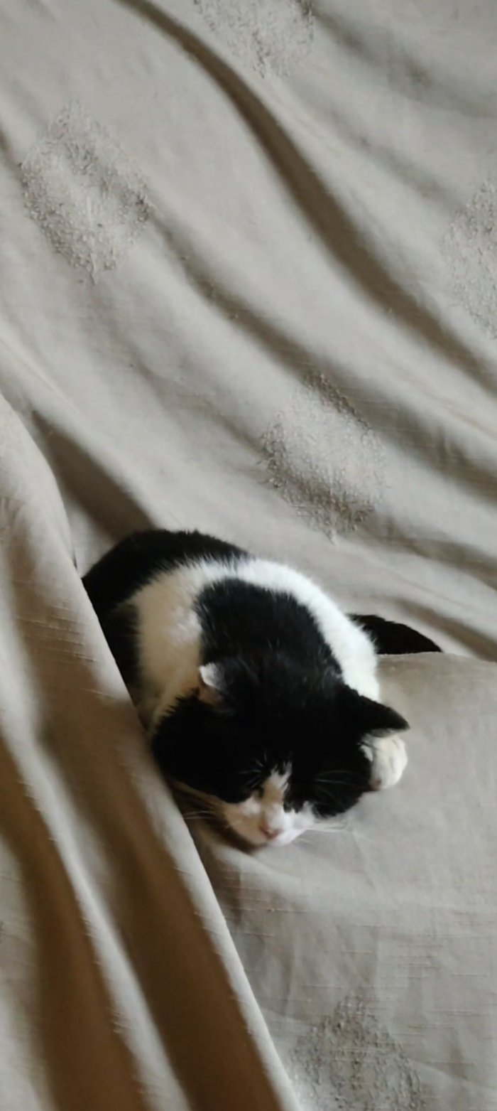 Сестра хозяйки одной из моих пристрояшек, у которой кот прожил 21 год, и еще осталась кошка, тоже подобрашка согласилась его приютить.