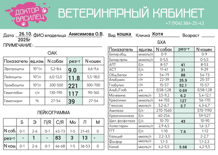 Третьего несчастного свозила на анализы. Анализы хорошие.