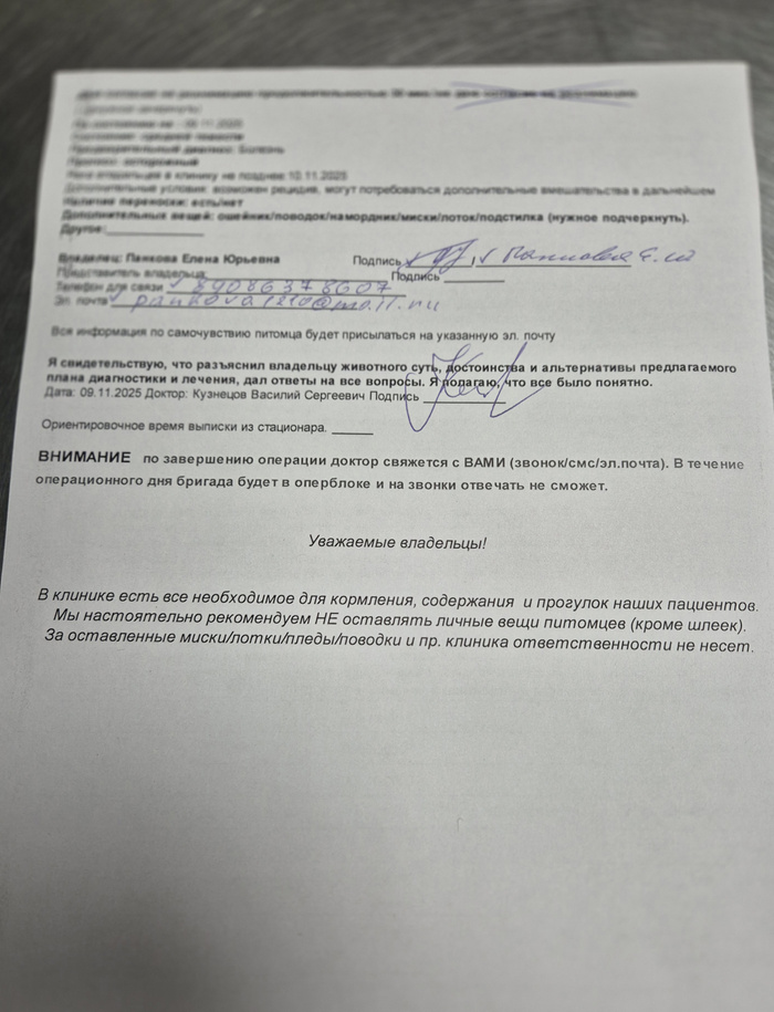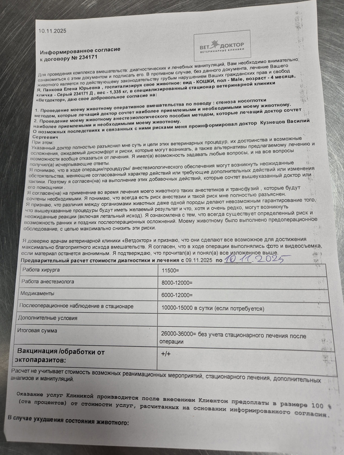Списал с нас не первичный прием 7100, а повторный 4600, за что спасибо ему огромное. Стоимость операции в информированном согласии определил 26-36 т.р.