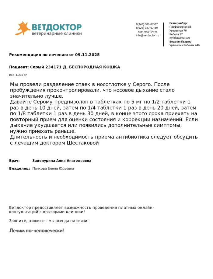 Уже ночью на почту пришло письмо, где указано, что Серому провели разделение спаек в носоглотке, назначили преднизолон на 2 месяца. По поводу антибиотиков направили к лечащему доктору, попробую записаться на онлайн консультацию, т.к в рабочие дни доехать до Химмаша крайне затруднительно