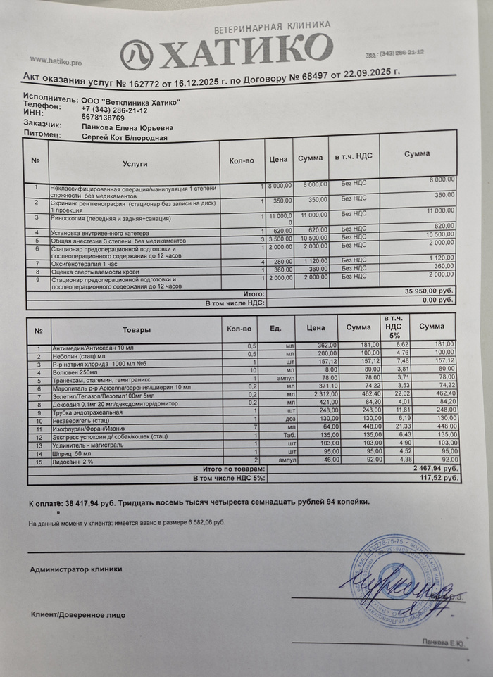 Часть долга за стационар в ВД и первичный прием у доктора Буссе у нас остался (16.700). Если у кого-то будет возможность и желание помочь с этим долгом - буду признательна!