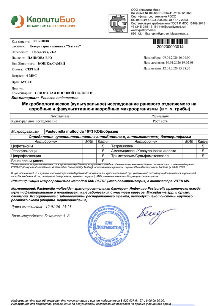 Обнаружена пастерелла. Почитала про неё, оказывается может быть нормальной частью микрофлоры, а может вызывать серьёзные проблемы.