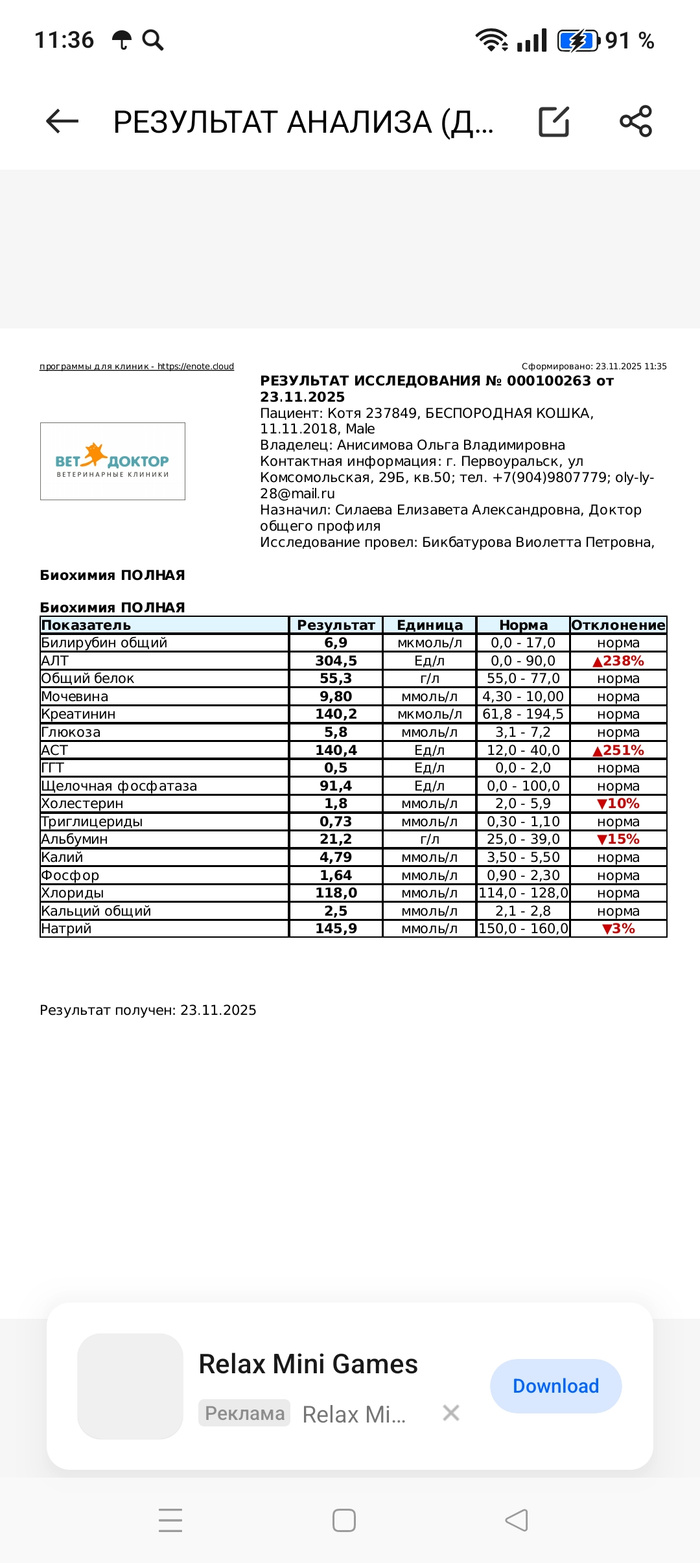 Приехала в клинику, там народу много, Лопатину не видела, поговорила со мной вет стационара, сказала, что АЛТ и АСТ увеличены не из за печени, т.к. Билирубин в норме, а из за травм мышц, во время операции.