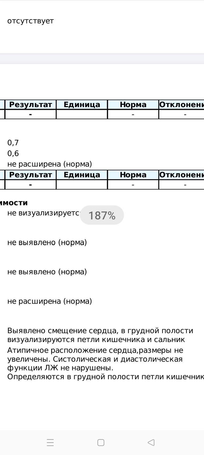 Про сердце она сказала, что УЗИ до операции и после, делал один врач и сердце до операции было среди кишечника, а после операции сердце встало на место.