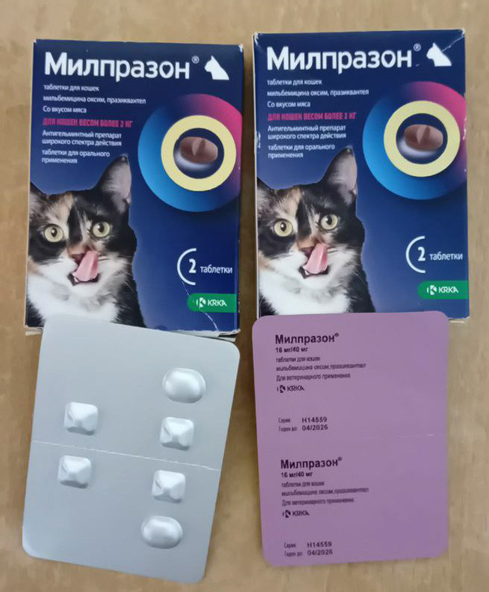 - Силикагелевый наполнитель «Чистый котик» (25л) и 2 упаковки глистогонки Милпразон – от Юли, у которой когда-то жила наша выпускница Мальвина-Лапа. СПАСИБО!