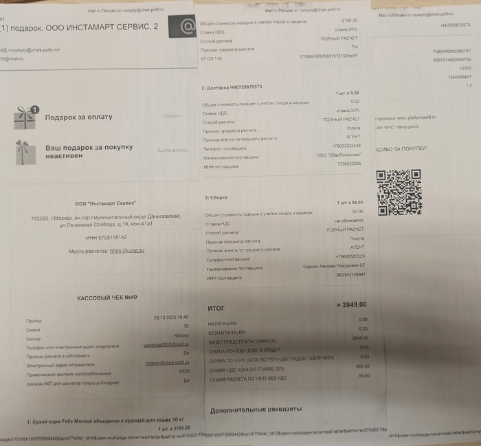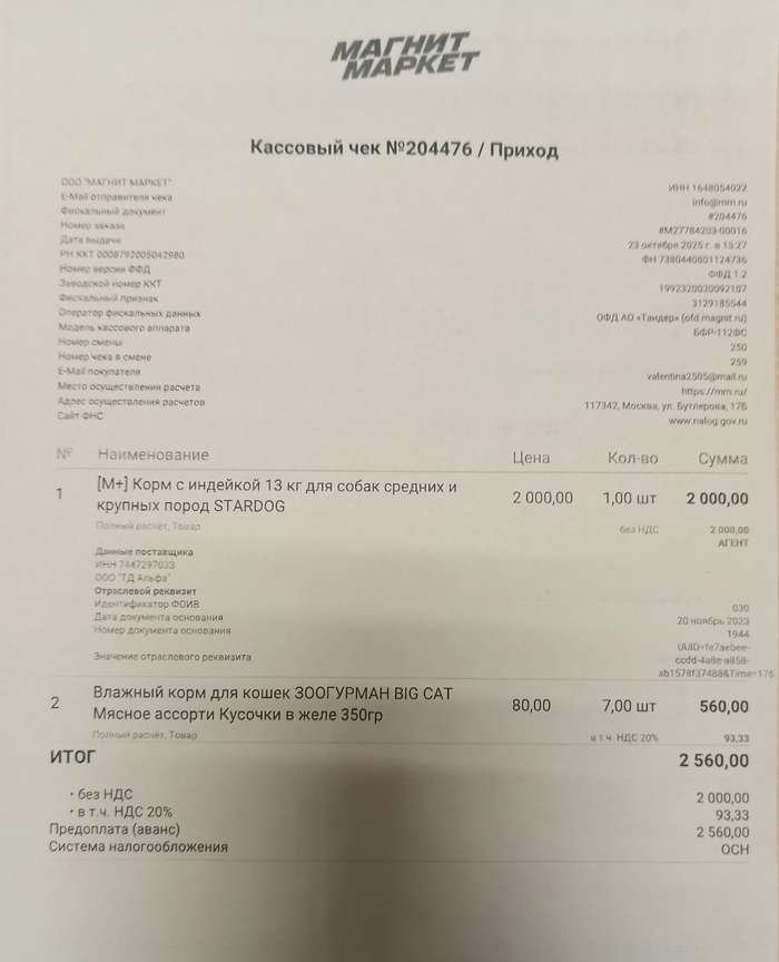 15.11.25. 1400-00 Елена Львовна С. ,, Хвостикам от хвостиков от Коти и Батяни ,, ( Поделила 2000 рублей мезжу котейками и Хасей )