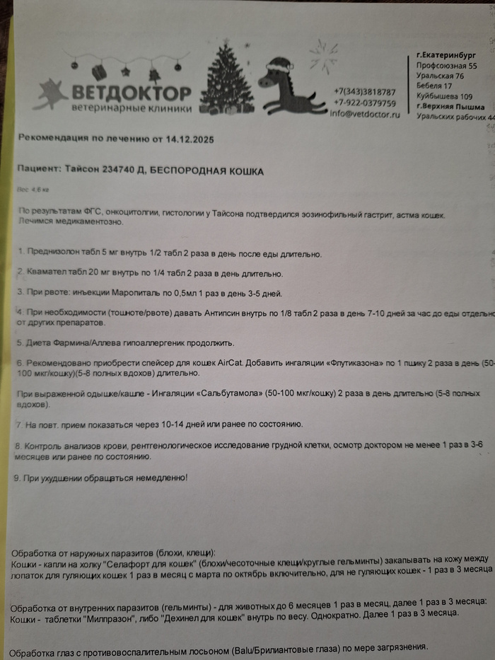Потом был назначен преднизолон, курс со снижением был около 2 мес. И вдруг стало хорошо. И с кашлем, и с рвотой. Поправилась, шерсть стала хорошая.