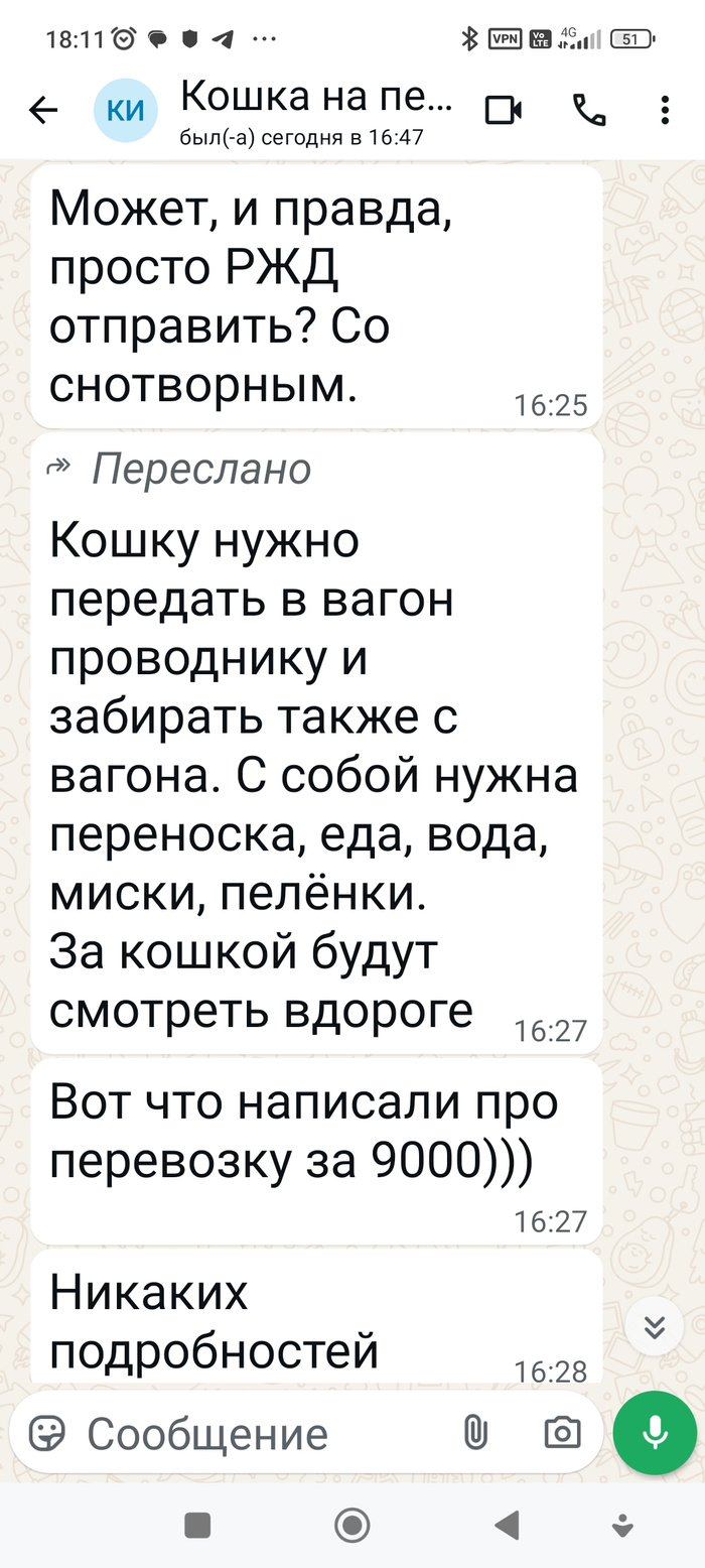 Решили, что кошку в Москву отправим ЖД