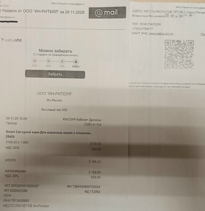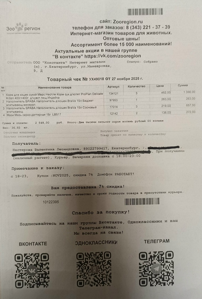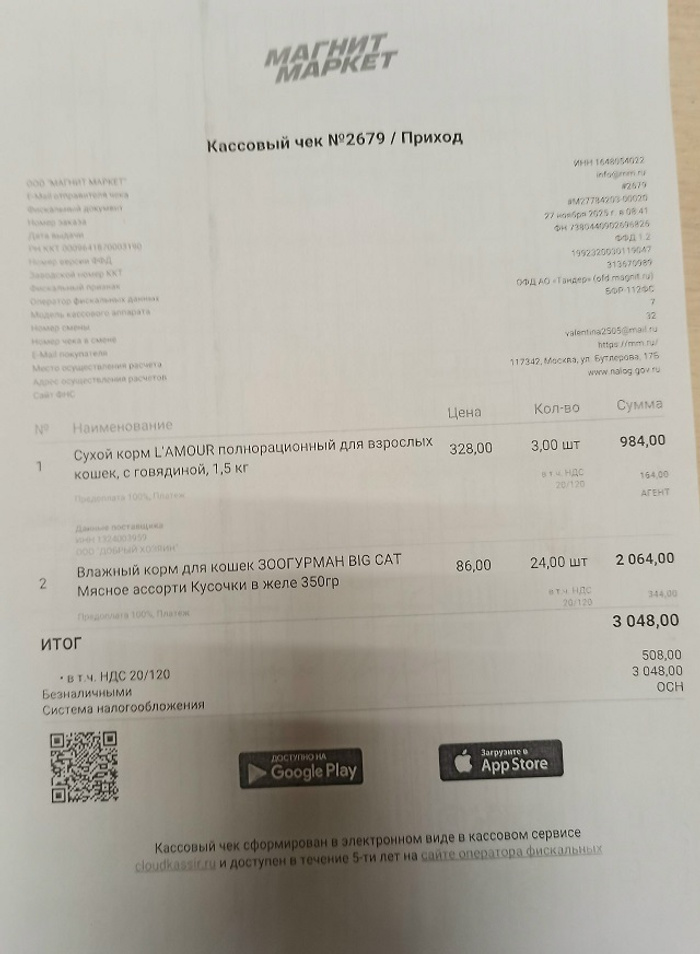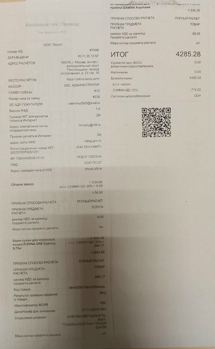 03.12.25. 500-00 Валентина Сергеевна К. ,, Котейкам на корм ,,