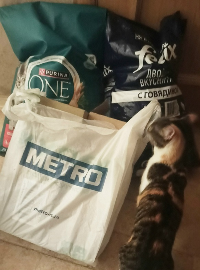 Доброго всем дня! Мы бескураторные…. Одна не справляюсь. Понятно, никто не виноват, сама не смогла пройти мимо… В настоящее время котеек 67 . Кушать любят хорошо, в месяц в среднем уходит 120 кг сухого корма, влажного 650 пачек, наполнителя 200 кг. Рэйчику, песик, которому в этом году исполнилось осенью 11 лет, покупаю сухой корм, баночки и дополнительно готовлю. В среднем это более восьмидесяти тысяч рублей. Всегда очень благодарна людям за помощь!!! Корм накупили заранее на месяц вперед, хоть и в долг, но зато будут ребятишки сытенькие, чтобы не рисковать, тем более в период нестабильности и ценовой и финансовой... Конечно же, дополнительно и пеленки , медикаменты и обработка . Средств просто не хватает, поэтому с протянутой рукой о помощи…..