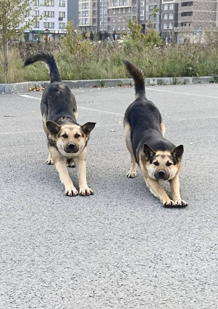 - К другим собакам очень дружелюбные, играют с местными домашними собаками