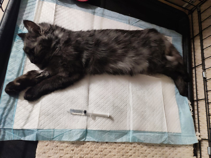 хвоста, такова версия врачей). У Хвости нарушена иннервация в области таза, она непроизвольно производит дефекацию и мочится во сне. В лоток тоже ходит, но и мимо - только так.