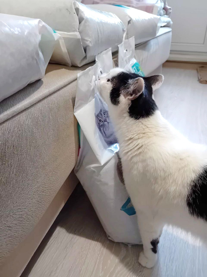 этого зрелища. Столько пакетов, целых 20! И все бесполезные, с его точки зрения. Потому что в них не еда, а наполнитель 🤪